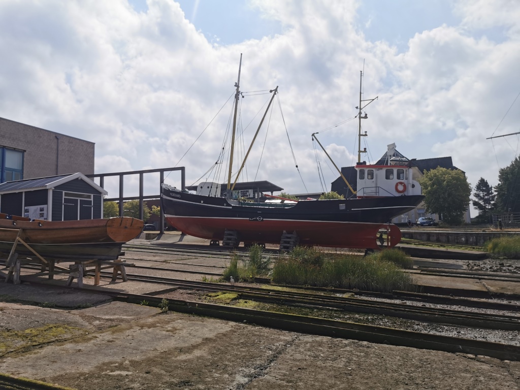 - in der Werft stehen ein paar Schiffe herum und man kann…