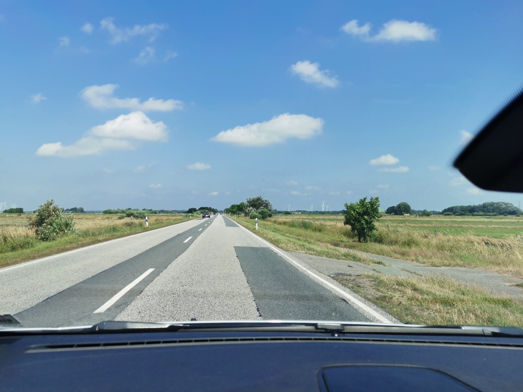 - Unterwegs auf der Landstraße gen Husum bei bestem Reisewetter.