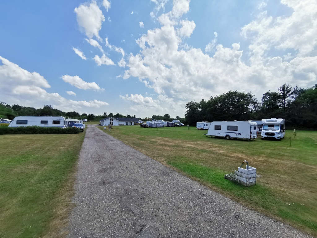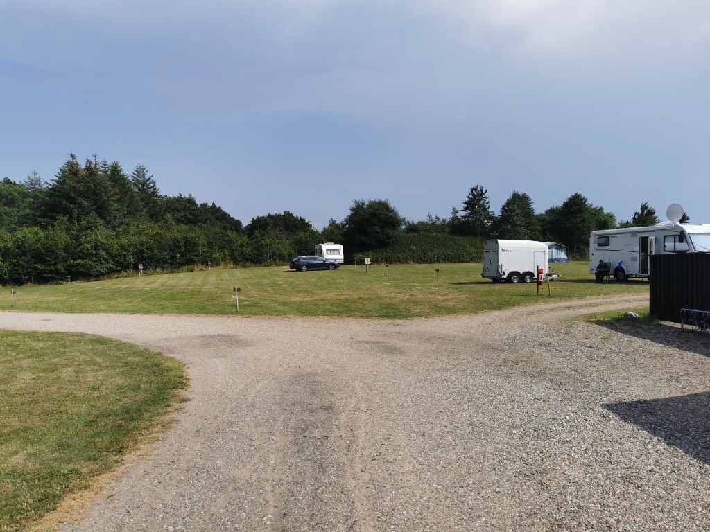 Als uns kurz darauf der Chef persönlich wie herzlich begrüßt, bestätigt sich meine Vermutung. Tatsächlich ist der Platz wirklich nur etwa zu einem Drittel belegt! Ungewöhnlich! Und vor allem unverdient! Das Einchecken erfolgt schnell und problemlos und spätestens, als wir unsere Wunsch- Parzelle 258 vorne in der Nähe der Rezeption und an der Ausfahrt eingenommen und eine Runde über den Platz gedreht haben, tun mir fast alle Nord- und Ostseecamper auf der deutschen Seite richtig leid! Wir haben die Bilder in den Facebook- Gruppen und Foren gesehen! Ausgebucht bis auf den letzten Platz! Rad an Rad! Vorzelt an Vorzelt! Maske an Maske! Selbst die ungeliebten Parzellen neben Müllstation und Chemieentsorgung sind in Deutschland in diesem Sommer 2021 belegt! Und hier? Die schönsten Parzellen, Platz ohne Ende und ein, wie es zu erwarten war, unfassbar luxuriös und edel ausgestattetes Servicehaus mit allen Schikanen! Dänemark ist und bleibt wirklich das beste Land für Campingurlaub in Europa! Nirgendwo anders sind wir bei all unseren Touren auf derart gute Serviceeinrichtungen und gehobene wie gepflegte Ausstattung gestoßen, wie hier. Der Urlaub fängt hervorragend an! Und außer uns ist kaum jemand da, die meisten anderen Wohnwagen, Dauercamper, sind unbewohnt.