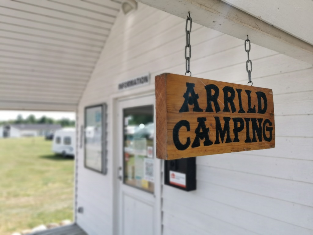 Um kurz nach 14 Uhr kommen wir an der Einfahrt zu stehen. Tatsächlich muss ich anerkennen, dass es die Reservierung wirklich nicht gebraucht hätte! Ja, ich wusste im Vorfeld, dass Dänemark äußerst gut mit Plätzen bestückt ist und man immer irgendwo ein Plätzchen bekommt. Aber es sind natürlich Sommerferien, Hochsaison und gerade der Bereich etwa bis Blavand ist eben bei Urlaubern auch beliebt! Da wird man eben als Deutscher schnell skeptisch und schläft einfach besser, wenn man ein Papier in der Hand hat, auf dem „Reservierungsbestätigung“ steht. Das maximale Gegenteil, eine Vollbremsung in die Entschleunigung und das dänische „Hygge“ bekommen wir sofort als Crash- Kurs serviert! Statt Hektik und 7 geöffneten Check- In Schaltern mit Autoschlange bis zur Hauptstraße stehen wir alleine hier an der Einfahrt! Dazu ist die Rezeption geschlossen und das hübsch gemachte Schild „Arrild Camping“ wackelt erhaben und mit einem leichten „Quiiick“ im Sommerwind. Herrlich!