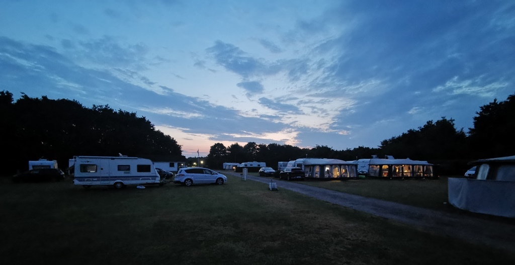 - Wir sind eindeutig im hohen Norden! die Uhr schlägt bald 11 und noch immer sieht man das Abendrot in der Ferne. Bei den wenigen Dauercampern nebenan brennt stimmungsvoll das Licht im Vorzelt. Dazu frische, klare Luft, es ist einfach perfekt! 🙂