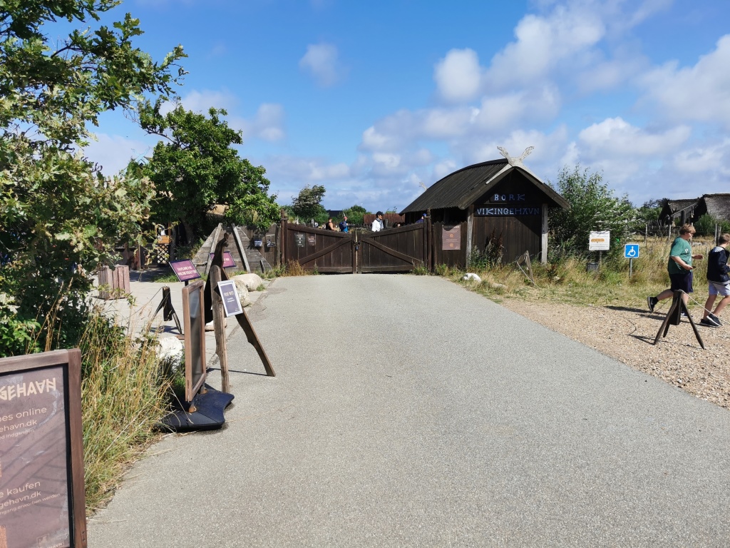 Bork Haven kennen wir natürlich von unserer Rundreise mit dem Wohnmobil durch Dänemark. Damals, das müsste der vierte Reisetag gewesen sein, aber haben wir auf dem Campingplatz gleich am Fischereihafen gestanden. Ob es damals schon das am Stadtrand befindliche Wikingerdorf gab, wissen wir nicht mehr genau. Und wenn doch, dann haben wir es damals nicht auf dem Schirm gehabt. Mit Kindern verschiebt sich natürlich der Fokus und obwohl wir in Ribe schon bei den Wikingern reingeschnuppert haben, möchten wir uns dieses Highlight nicht entgehen lassen. Als wir vom Campingplatz auf die Landstraße einbiegen, lacht uns für diesen Plan vollends die Sonne. Perfekt!