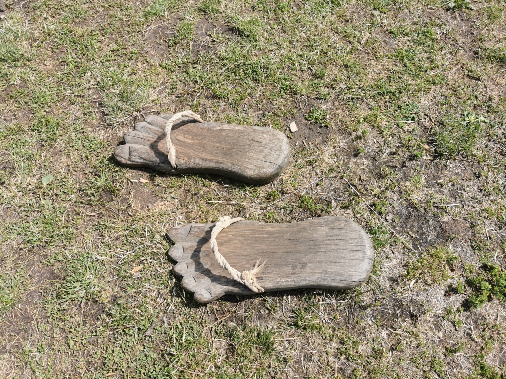 Nachdem wir Häuser und Kirche besichtigt haben, entdecken wir den „Spielplatz“ des Wikingerdorfes. Früher gab es noch keine Rutschen oder Klettergerüste. Wohl aber Wurfspiele oder Holzmänner, die man mit Knüppeln oder Schwertern angreifen konnte. So bereitete man den Nachwuchs spielerisch darauf vor, eben auch einer kriegerischen Rasse anzugehören, die sich auch mit Beutenzügen einen Namen in der Geschichte gemacht haben. Für das unbeschwerte kindliche Spiel ganz ohne Hintergedanken wäre da nur der kleine Teich, auf dem die Kinder mit kleinen geschnitzten und an Schnüren befestigte Boote auf dem Wasser herumtreiben lassen konnten.