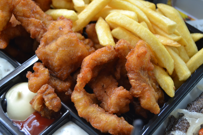 Doch werden wir dem Standort an Meer und Küste gerecht, darf es durchaus auch gerne maritim sein! Zwar noch immer frittiert, ja, aber dafür versteckt sich unter der goldbraunen Kruste von Lekkerbek (Lekkerbek, ugs. auch „Lekkerbekje“, ist ein ganzes in Backteig fritiertes Fischfilet, meist vom Wittling oder Kabeljau, seit jüngerer Zeit kommt auch Pangasius zum Einsatz) und Kibbeling (sie sehen ähnlich wie Chicken Nuggets aus, sind aber Fischhappen! In Backteig fritiert steckt unter der würzigen Panade Kabeljau oder Seelachs.) vielleicht doch noch die ein oder andere Omega3- Spore, die einen das herzhafte Fischgericht an Knoblauchsoße mit guten Gewissen genießen lässt. Man muss nur selbst dran glauben! 😉